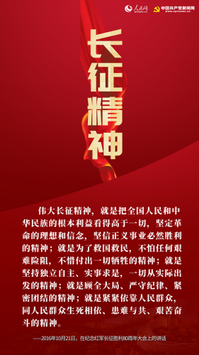 “不論我們的事業(yè)發(fā)展到哪一步,不論我們?nèi)〉昧硕啻蟪删?,我們都要大力弘揚(yáng)偉大長(zhǎng)征精神,在新的長(zhǎng)征路上繼續(xù)奮勇前進(jìn)。”——習(xí)近平
